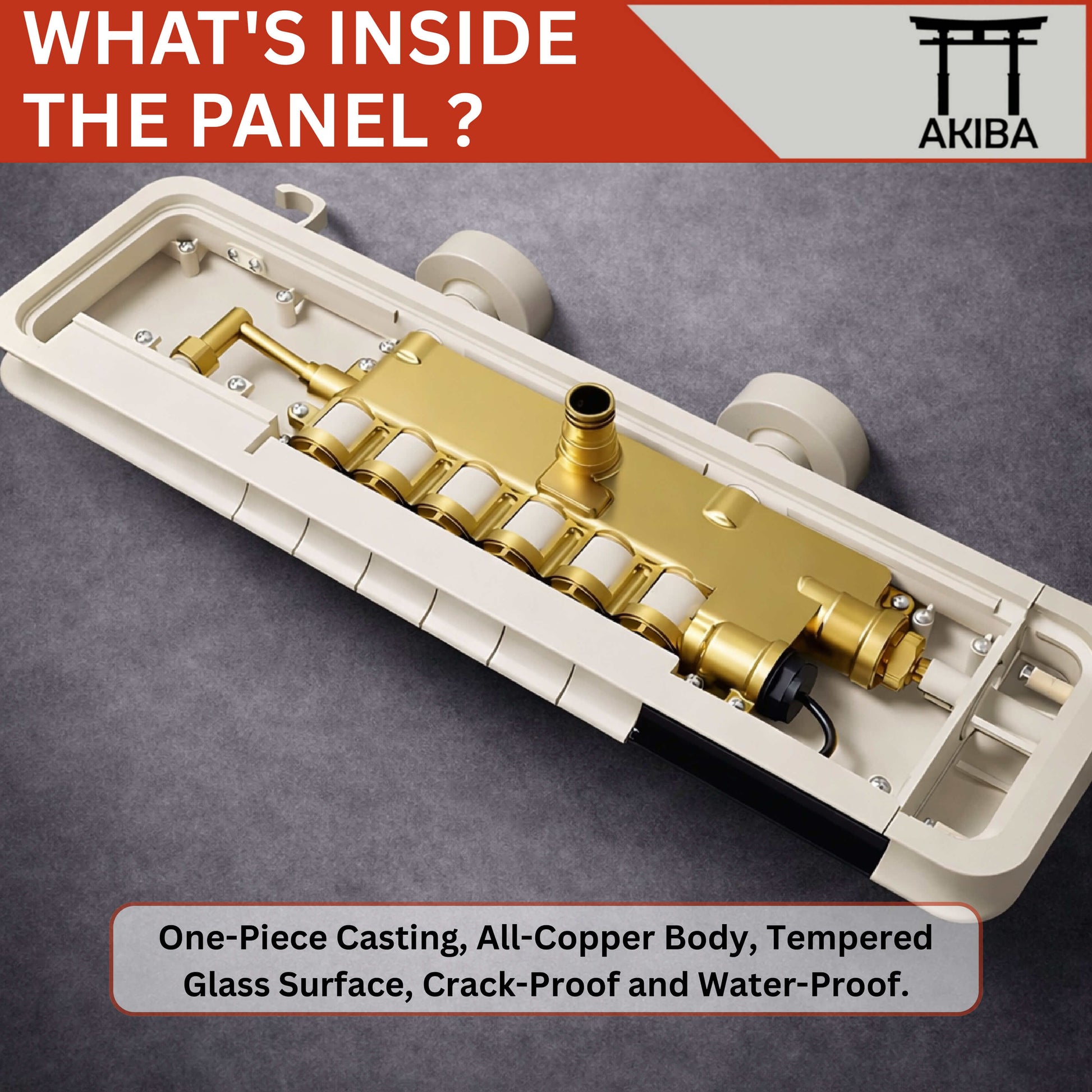 - In The Box: 1x Brass Ambient Light Panel, 1x Overhead Shower, 1x Hand Shower, 1x Bidet, Stainless Steel Pipes, Connection Pipes & Installation Accessories (Refer Image)