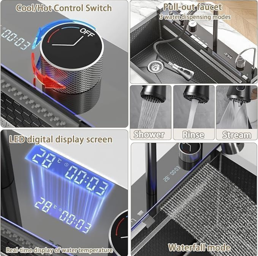 5 Modes/Buttons for Washing and Cleaning: Various modes for different kitchen tasks.