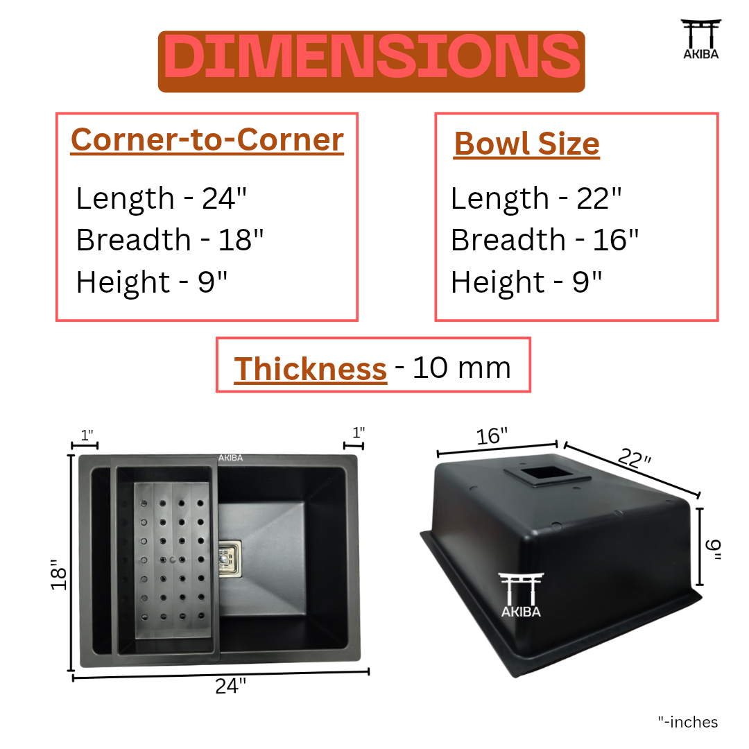 Sink Size: 24x18 INCHES [LxB]